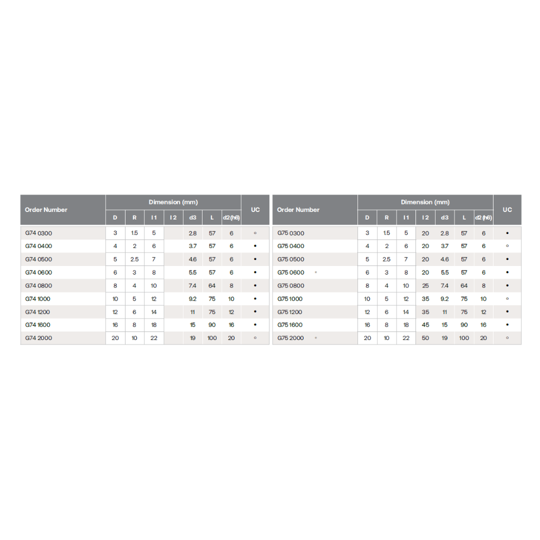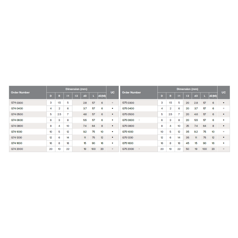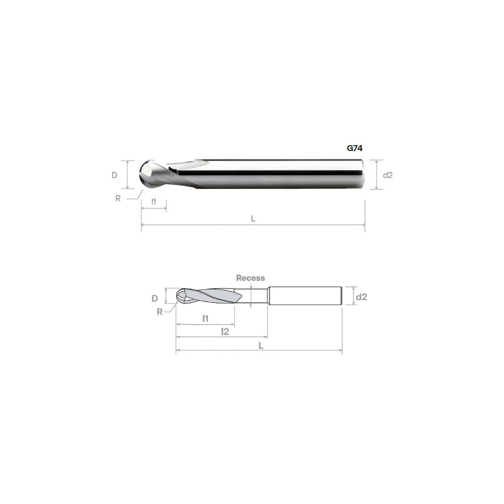AL BN BALLNOSE CUTTERS, 2 FLUTES series G74/75