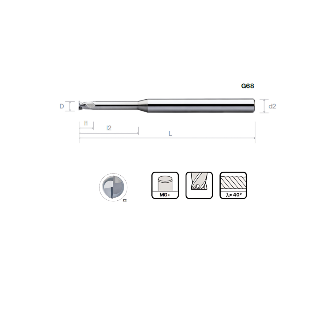 HPMT AL SE MINIATURE ENDMILLS WITH LONG NECK, 2 FLUTES G68