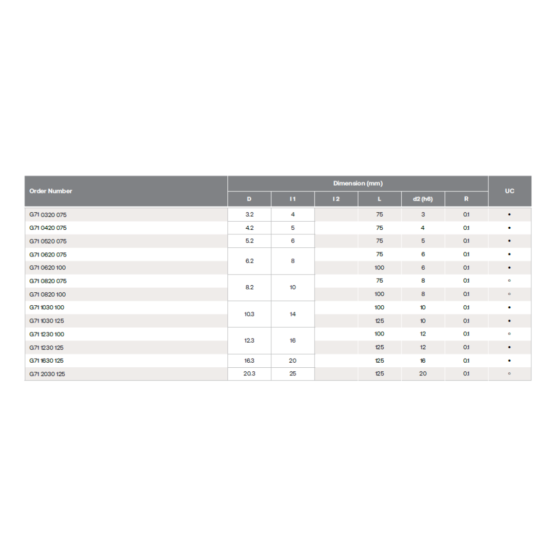 HPMT AL SE REDUCED SHANK ENDMILLS, 2 FLUTES series G71