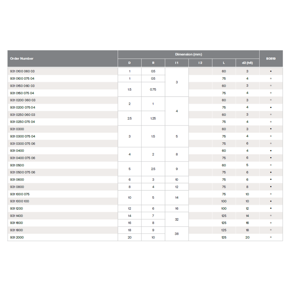 BN 45 LONG BALLNOSE CUTTERS, 2 FLUTES series 931