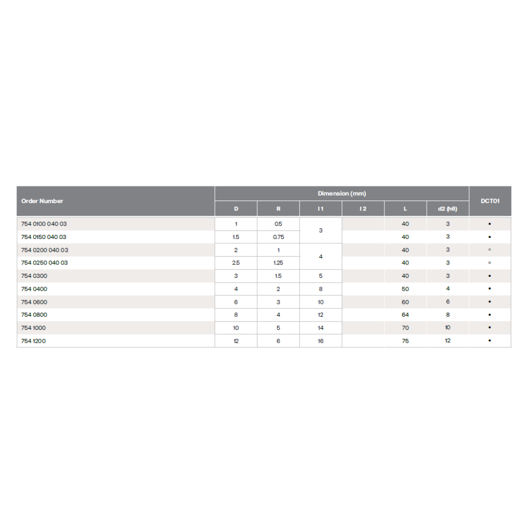 HPMT BN GR BALLNOSE CUTTERS, 2 FLUTES series 754