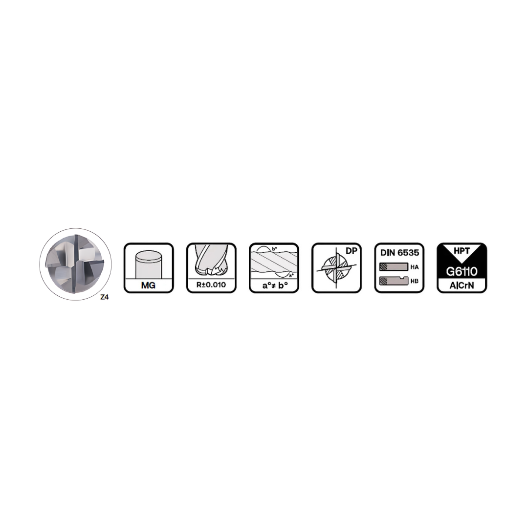 HPMT NITICO 30 DP/DH LONG ENDMILLS / WITH RECESS, 4 FLUTES J97/J98/H38/H39