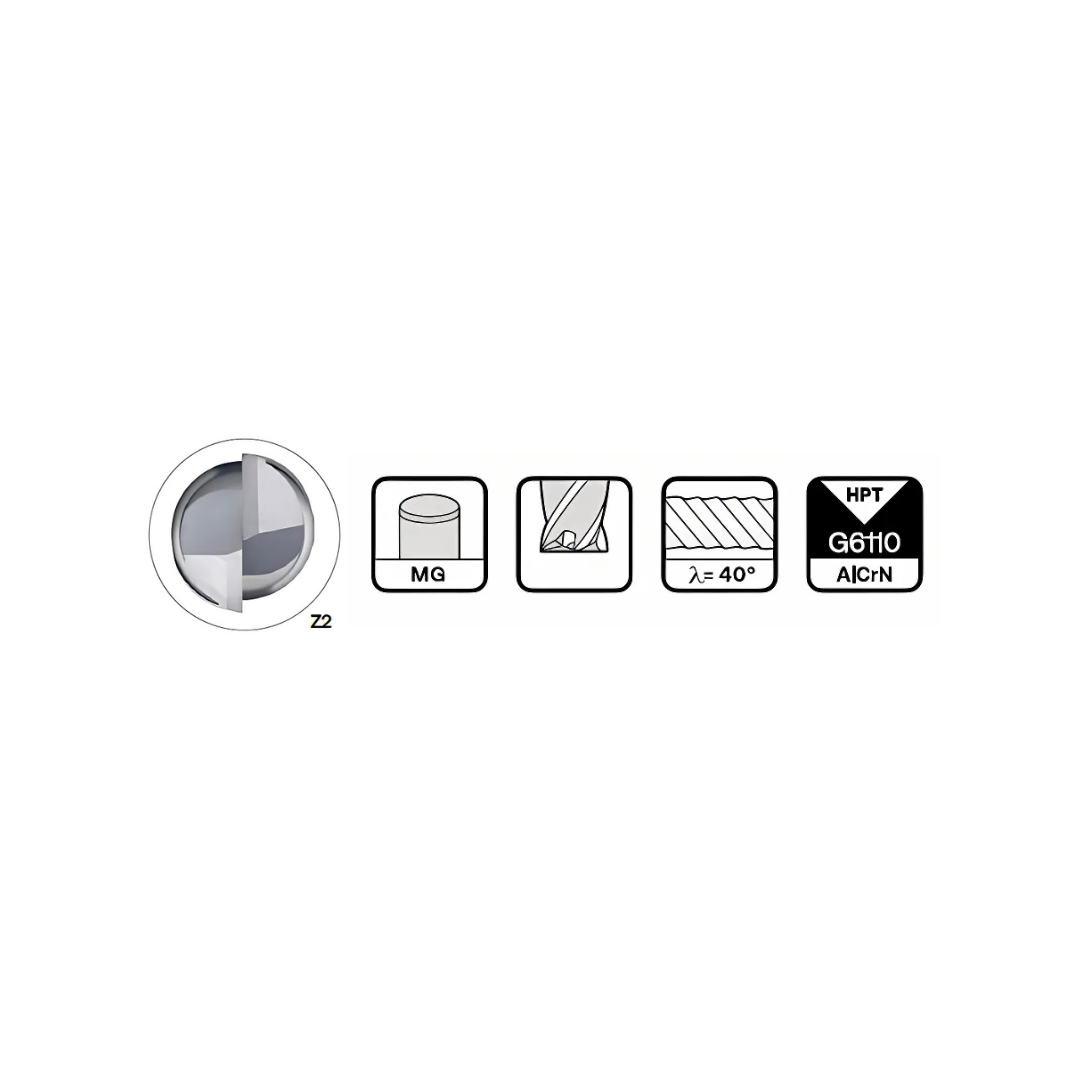 HPMT NITICO 30 ENDMILLS WITH WELDON, 2 FLUTES series C42