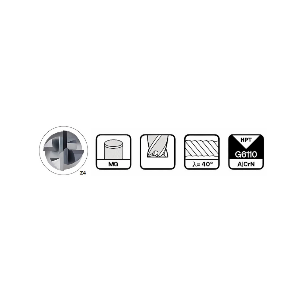 HPMT NITICO 30 ENDMILLS WITH WELDON, 4 FLUTES series C44