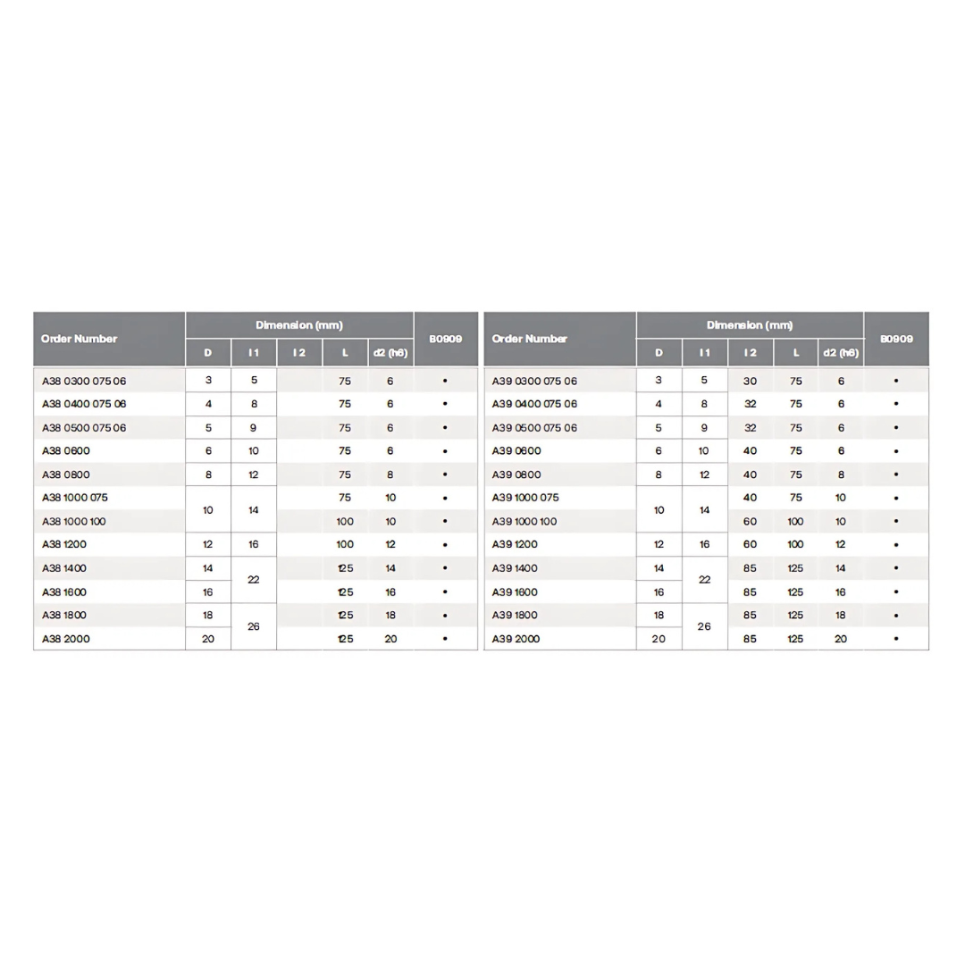 SE 60 LONG, LONG REACH ENDMILLS WITH SHORT FLUTES / WITH RECESS, 4 FLUTES series A38/A39