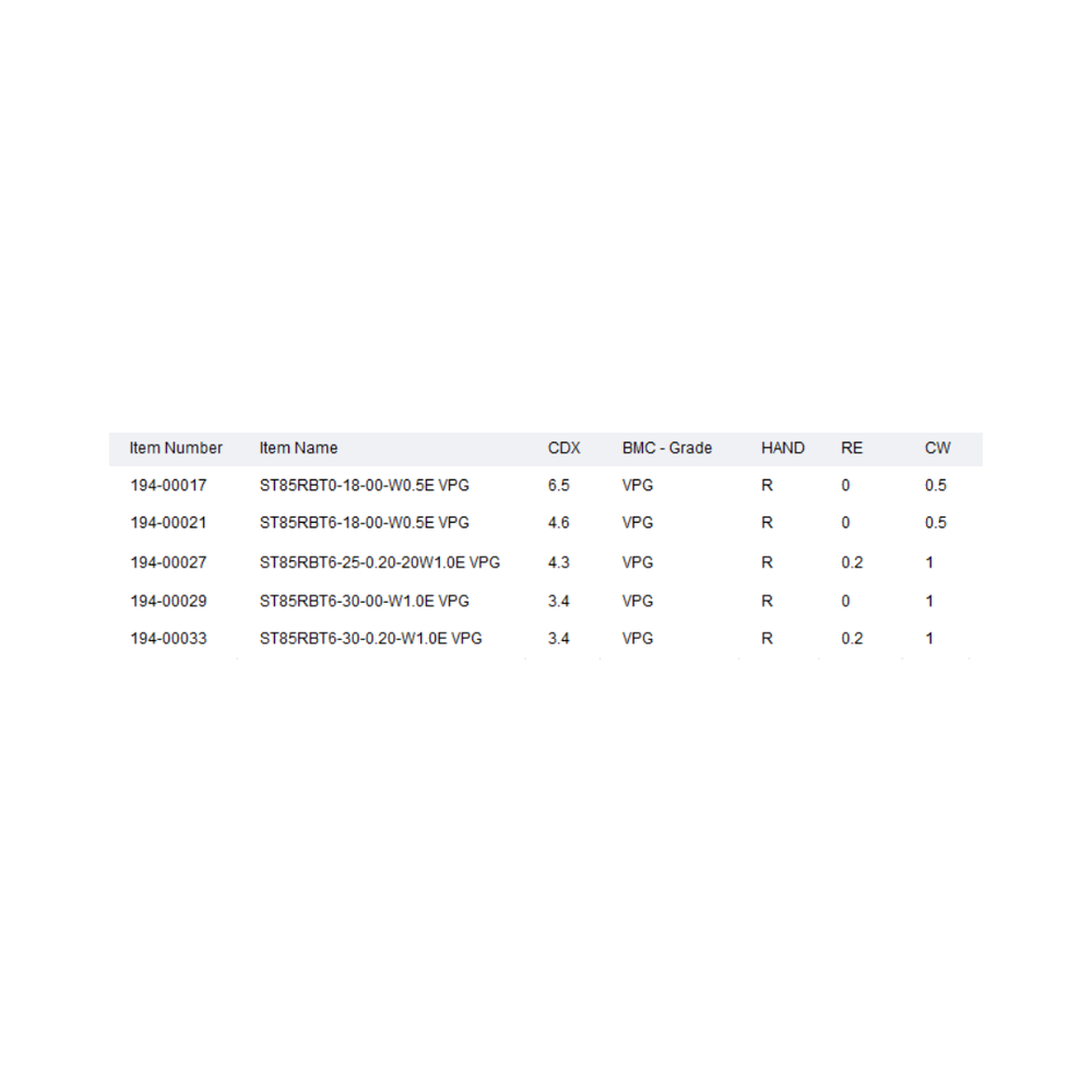 VARGUS Back Turning Inserts ST-CUT 85 Groove