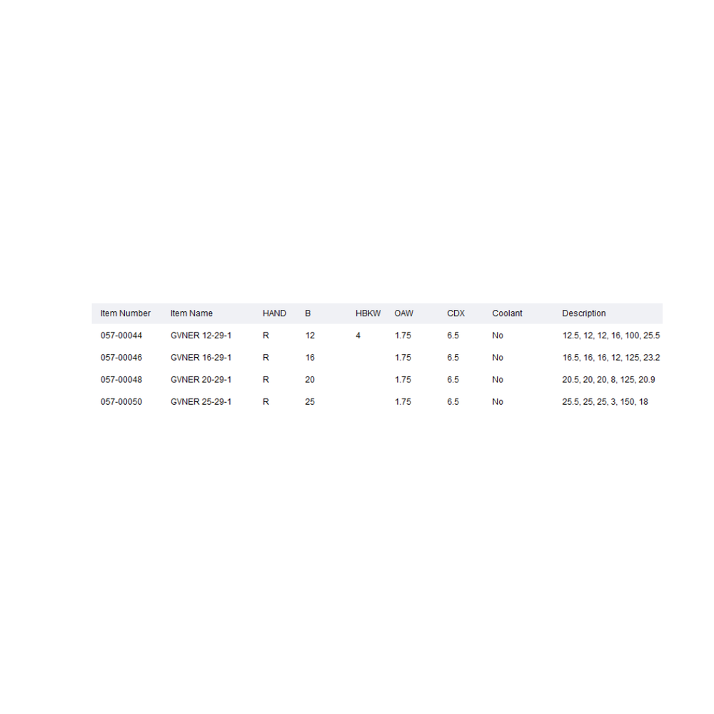 VARGUS Groove Turning GrooVical 29 Square Holders GVNER