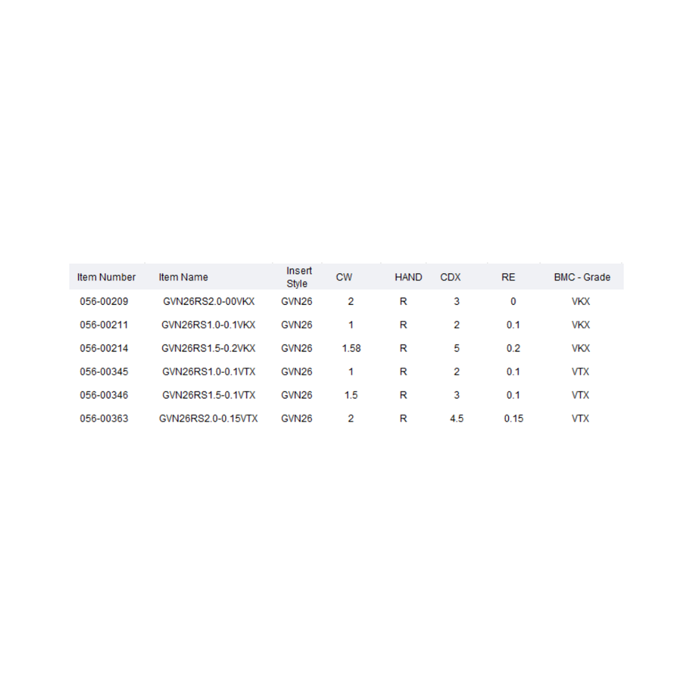 VARGUS Grooving GrooVical Inserts GVN26